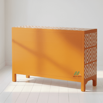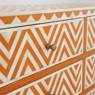 Elevate your home décor with the timeless elegance of this Bone Inlay 6 Chest of Drawers. Expertly handcrafted by skilled artisans, it features intricate bone inlay detailing set into a sturdy wooden frame, creating a refined and eye-catching design. The six spacious drawers provide ample storage for clothing, accessories, or everyday essentials, helping keep your space beautifully organized. Finished with smooth metal knobs and a polished surface, this chest of drawers blends seamlessly with modern, bohemian, and classic interiors. Ideal for bedrooms, living rooms, or hallways, it offers the perfect balance of functionality and artisanal craftsmanship.