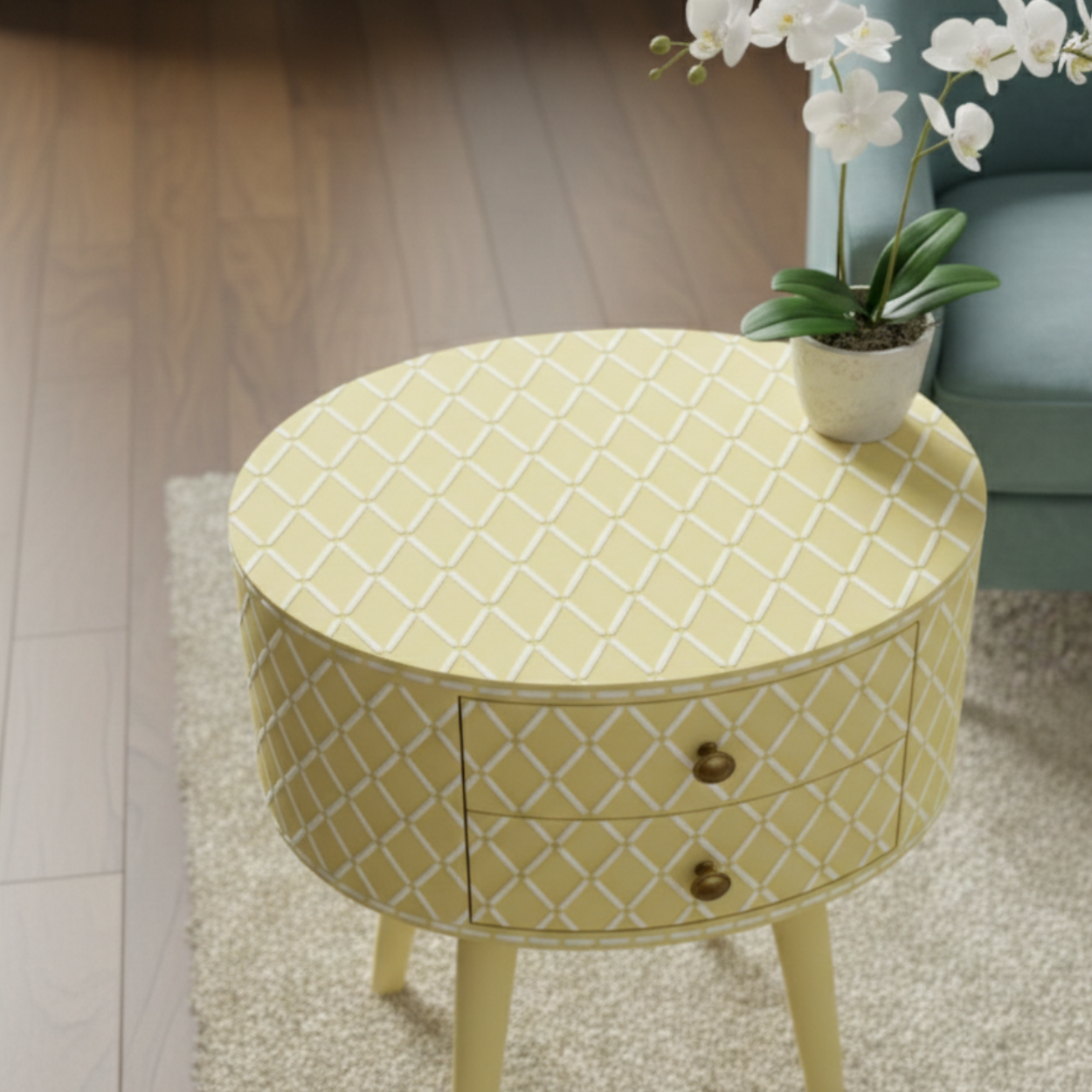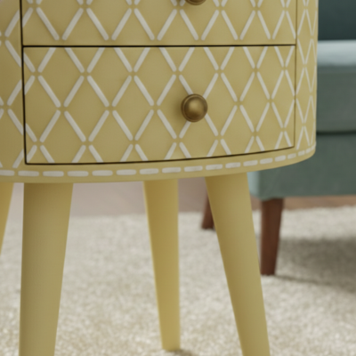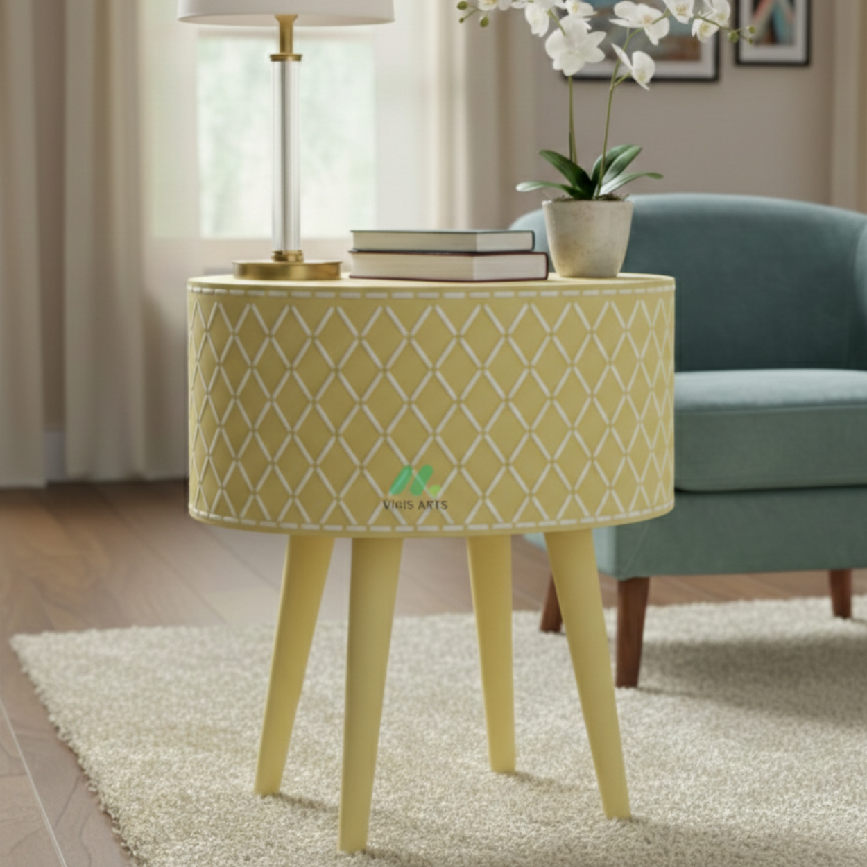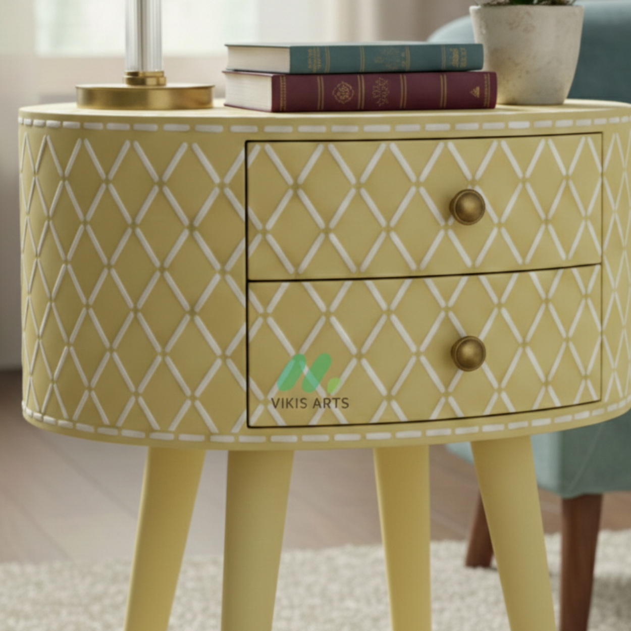 Add timeless elegance to your bedroom with this handcrafted Bone Inlay Bedside Table. Meticulously made by skilled artisans, each piece features intricate bone inlay patterns set into a sturdy wooden frame, creating a striking blend of traditional craftsmanship and contemporary design. The smooth tabletop offers ample space for lamps, books, or décor, while the drawer and shelf provide convenient storage for everyday essentials. Finished with fine detailing and a polished surface, this bedside table is both functional and a statement of luxury, making it a perfect addition to modern, classic, or eclectic interiors.