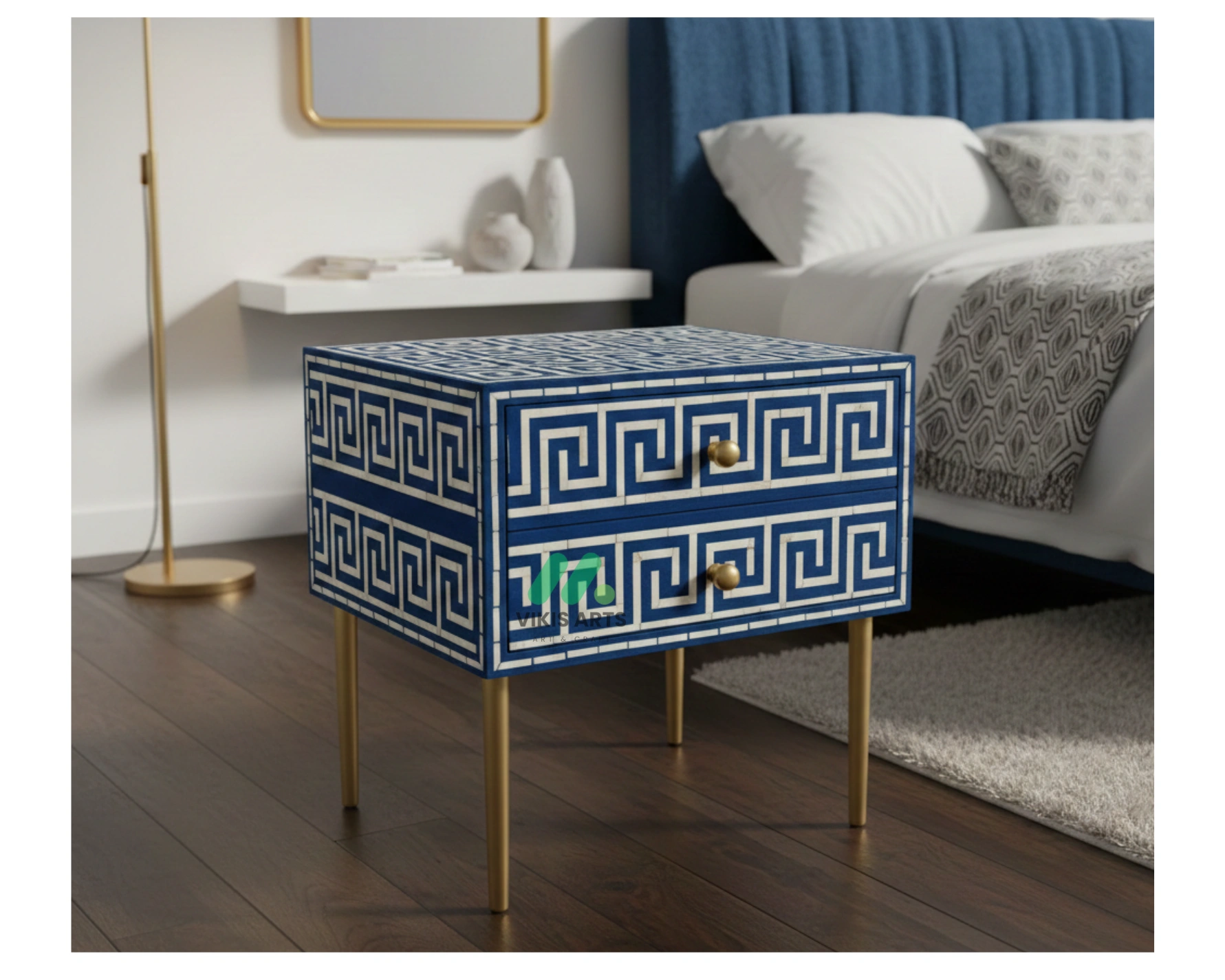 Add timeless elegance to your bedroom with this handcrafted Bone Inlay Bedside Table. Meticulously made by skilled artisans, each piece features intricate bone inlay patterns set into a sturdy wooden frame, creating a striking blend of traditional craftsmanship and contemporary design. The smooth tabletop offers ample space for lamps, books, or décor, while the drawer and shelf provide convenient storage for everyday essentials. Finished with fine detailing and a polished surface, this bedside table is both functional and a statement of luxury, making it a perfect addition to modern, classic, or eclectic interiors.