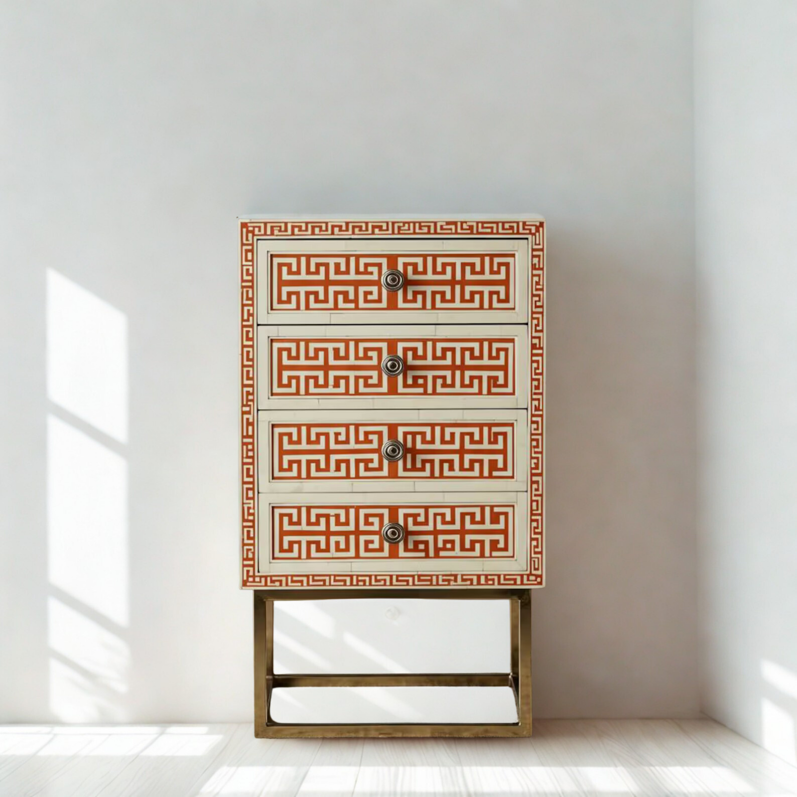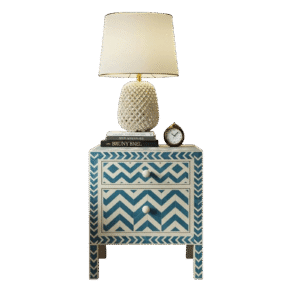 Add timeless elegance to your bedroom with this handcrafted Bone Inlay Bedside Table. Meticulously made by skilled artisans, each piece features intricate bone inlay patterns set into a sturdy wooden frame, creating a striking blend of traditional craftsmanship and contemporary design. The smooth tabletop offers ample space for lamps, books, or décor, while the drawer and shelf provide convenient storage for everyday essentials. Finished with fine detailing and a polished surface, this bedside table is both functional and a statement of luxury, making it a perfect addition to modern, classic, or eclectic interiors.