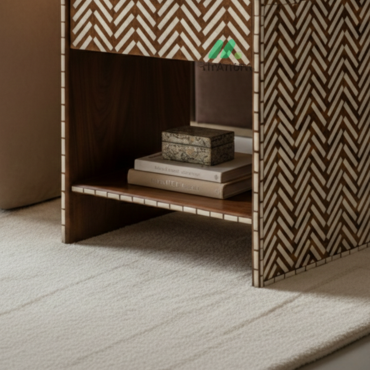 Bone Inlay Bedside Table