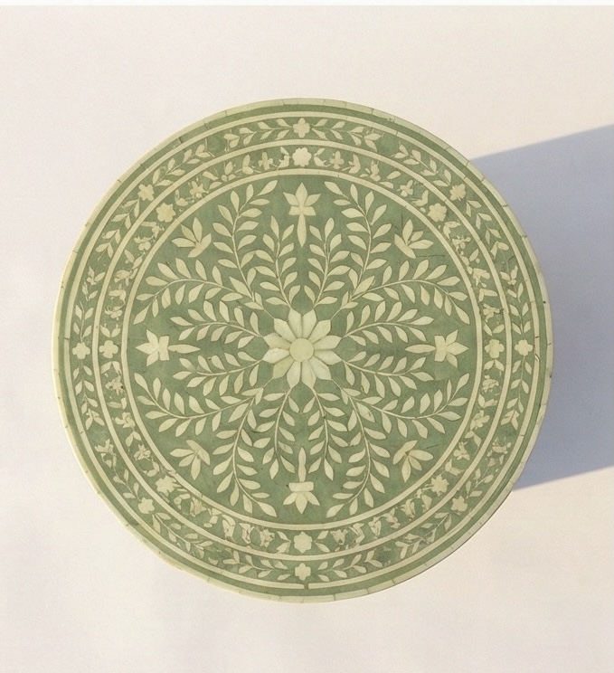 Add timeless elegance to your bedroom with this handcrafted Bone Inlay Bedside Table. Meticulously made by skilled artisans, each piece features intricate bone inlay patterns set into a sturdy wooden frame, creating a striking blend of traditional craftsmanship and contemporary design. The smooth tabletop offers ample space for lamps, books, or décor, while the drawer and shelf provide convenient storage for everyday essentials. Finished with fine detailing and a polished surface, this bedside table is both functional and a statement of luxury, making it a perfect addition to modern, classic, or eclectic interiors.