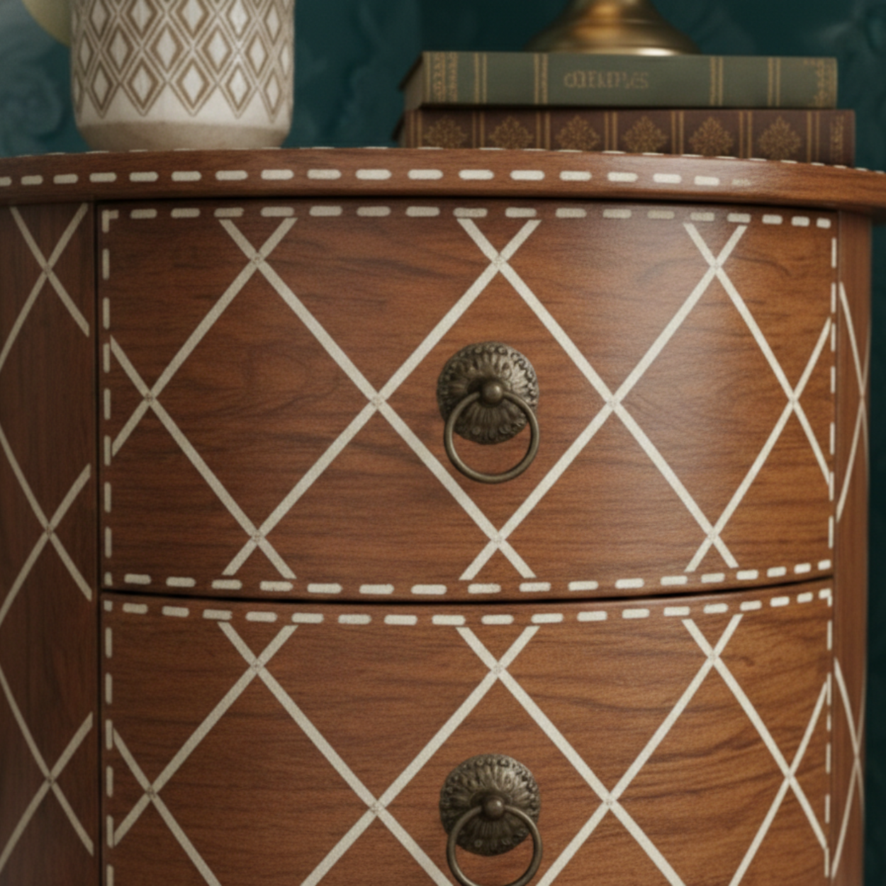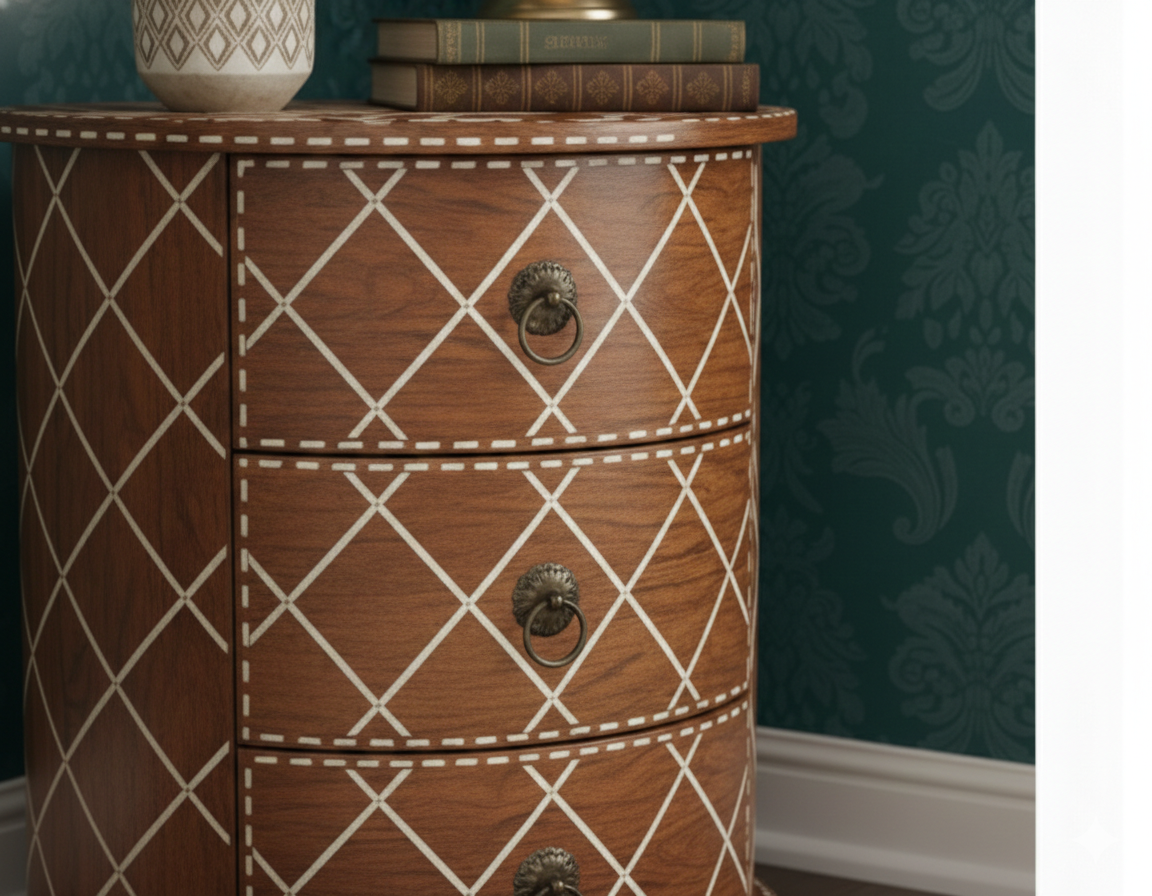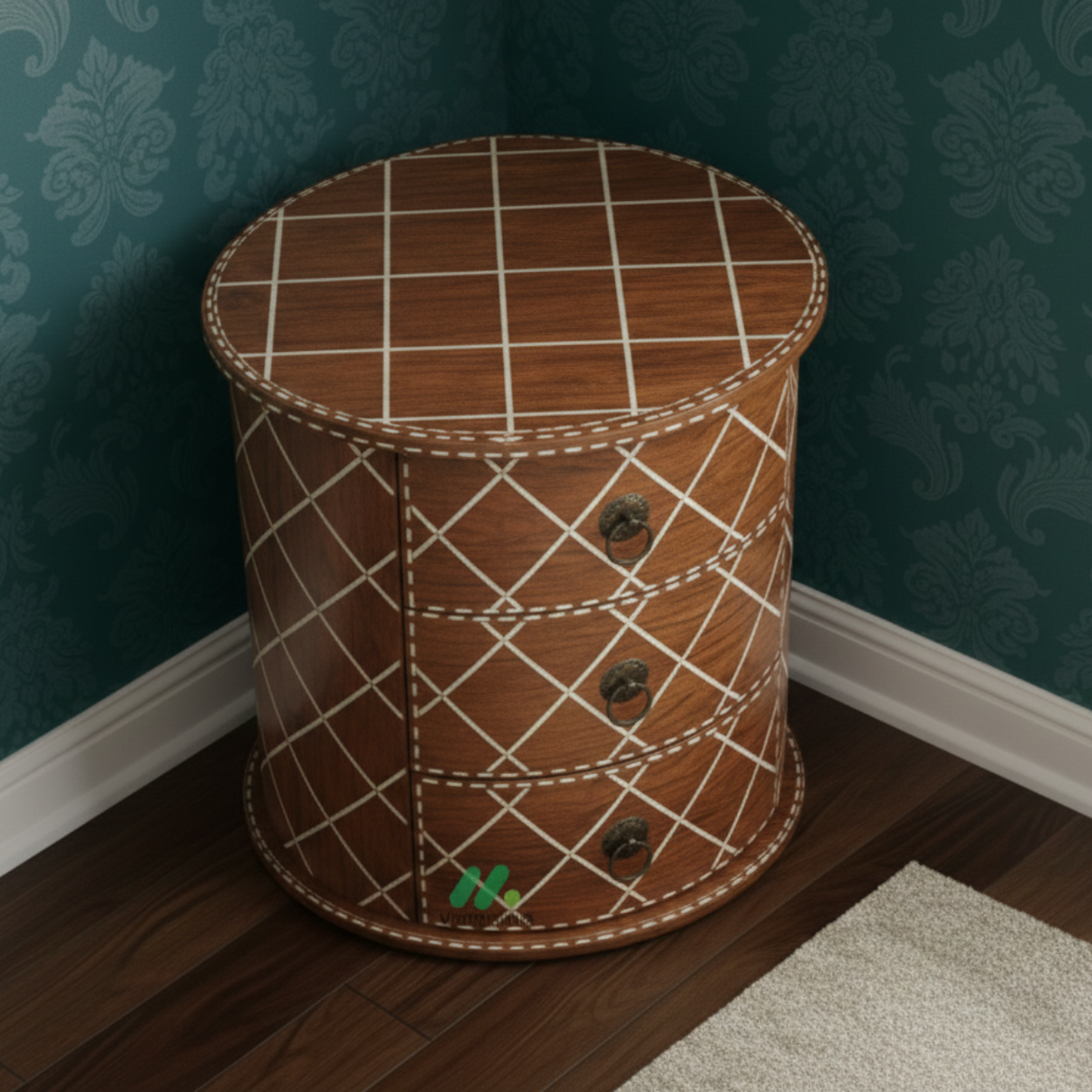 Add timeless elegance to your bedroom with this handcrafted Bone Inlay Bedside Table. Meticulously made by skilled artisans, each piece features intricate bone inlay patterns set into a sturdy wooden frame, creating a striking blend of traditional craftsmanship and contemporary design. The smooth tabletop offers ample space for lamps, books, or décor, while the drawer and shelf provide convenient storage for everyday essentials. Finished with fine detailing and a polished surface, this bedside table is both functional and a statement of luxury, making it a perfect addition to modern, classic, or eclectic interiors.