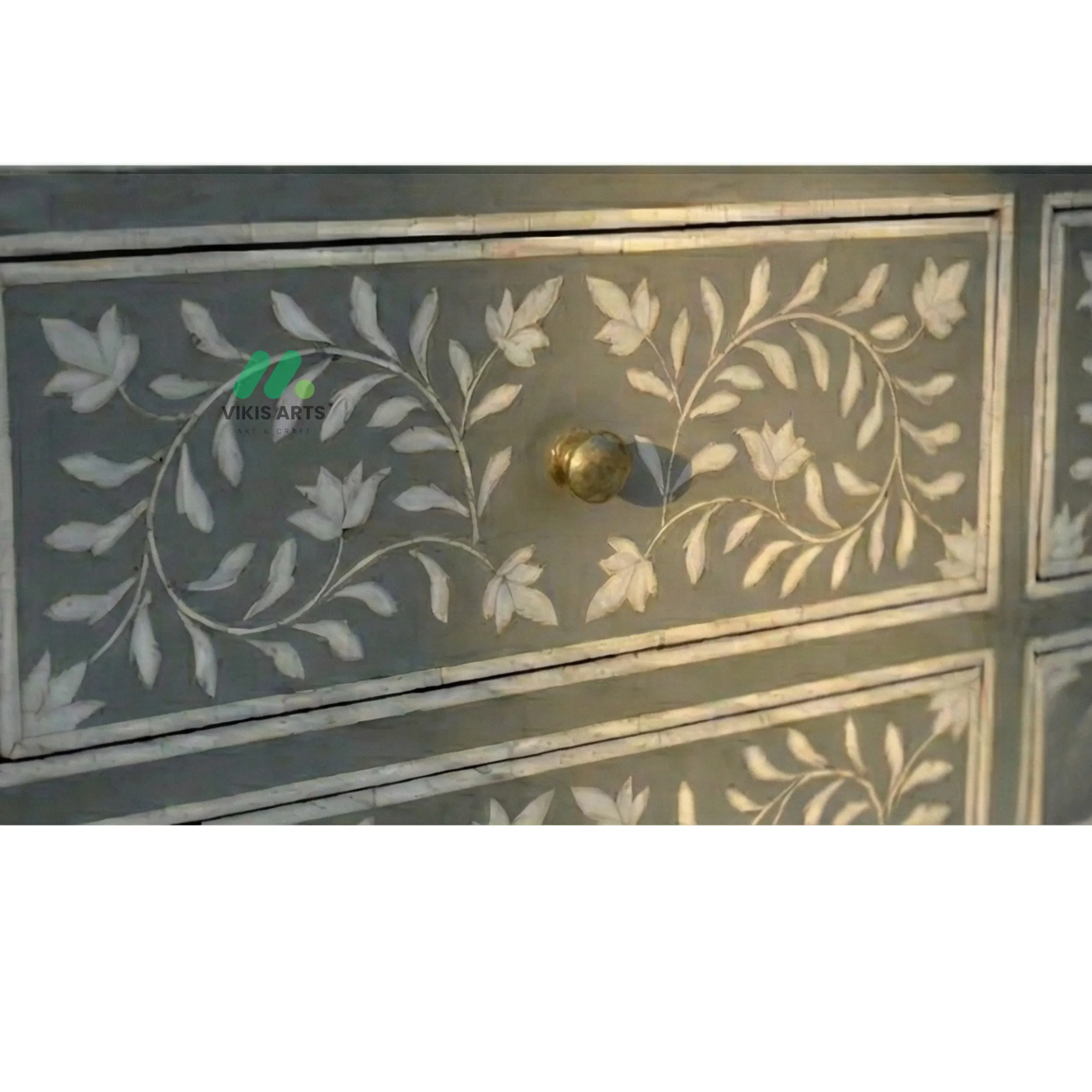Elevate your interior with the timeless elegance of this handcrafted Bone Inlay 3 Chest of Drawer. Expertly made by skilled artisans, this beautiful piece showcases intricate bone inlay patterns set into a solid wooden base, reflecting exceptional craftsmanship and traditional artistry.