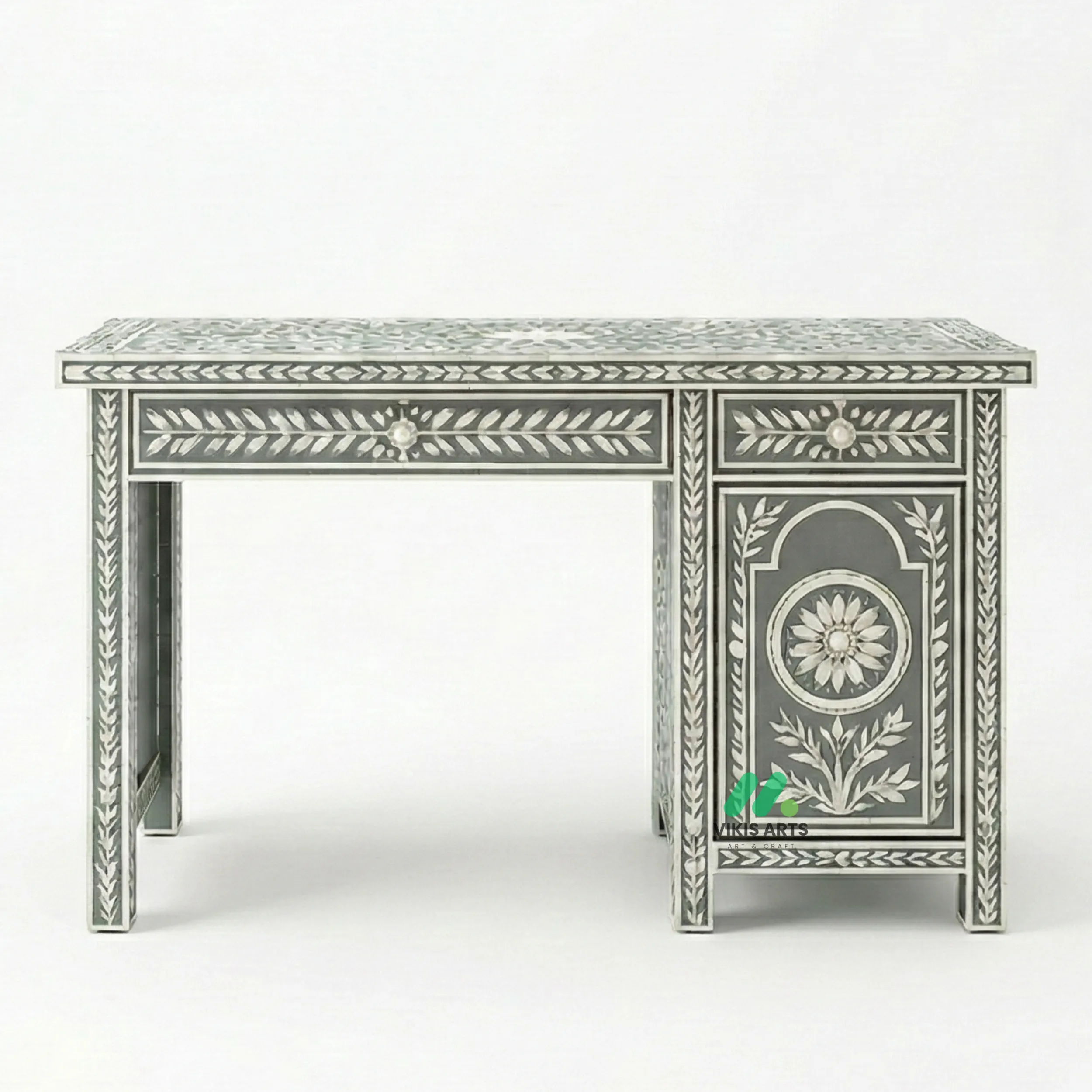 Enhance your interior with this stunning Bone Inlay Console Table, beautifully handcrafted by skilled artisans using traditional inlay techniques. Each piece features delicately carved bone inlaid into a solid wood base, forming intricate patterns that make every table truly unique.