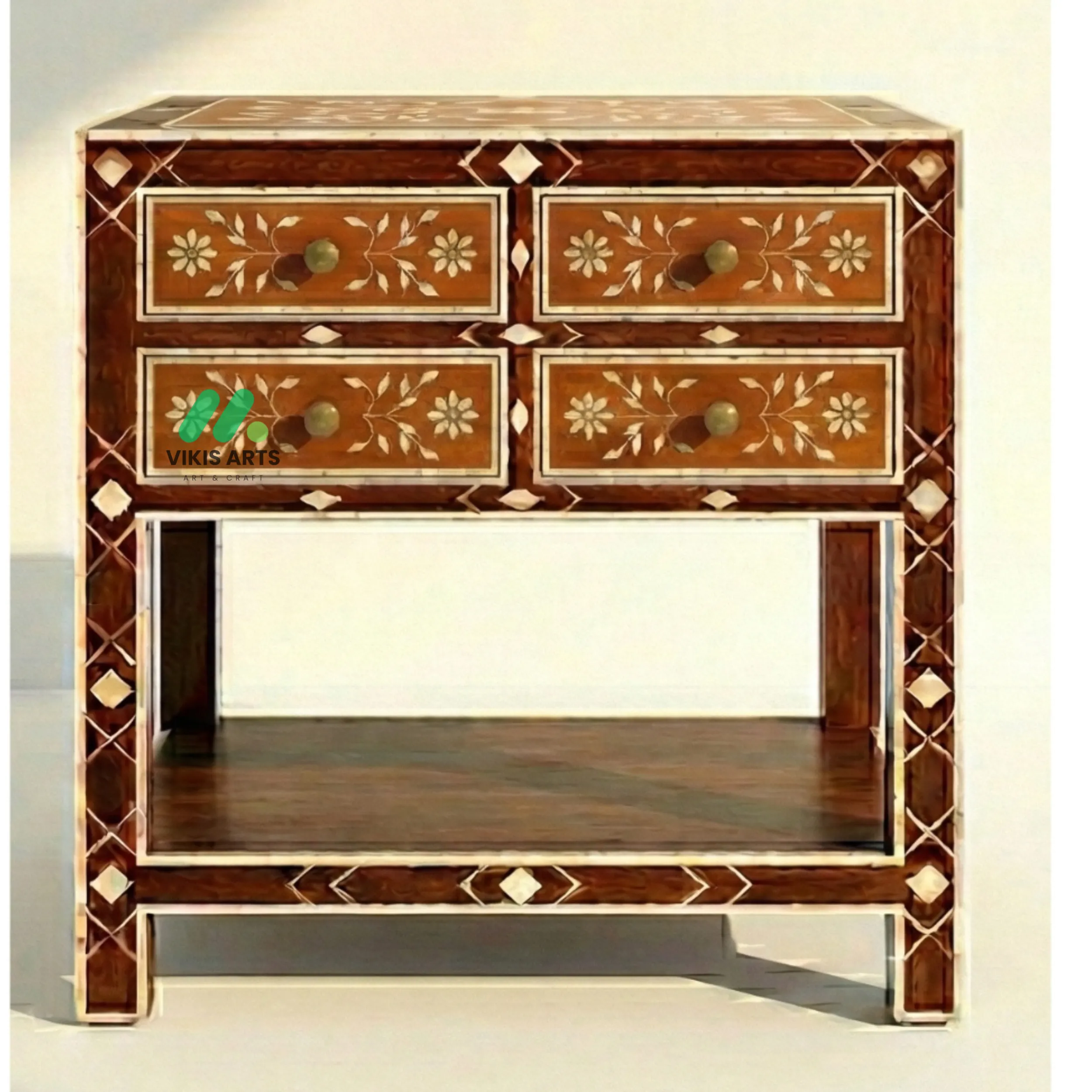 Bone Inlay 4 Chest of Drawers Description