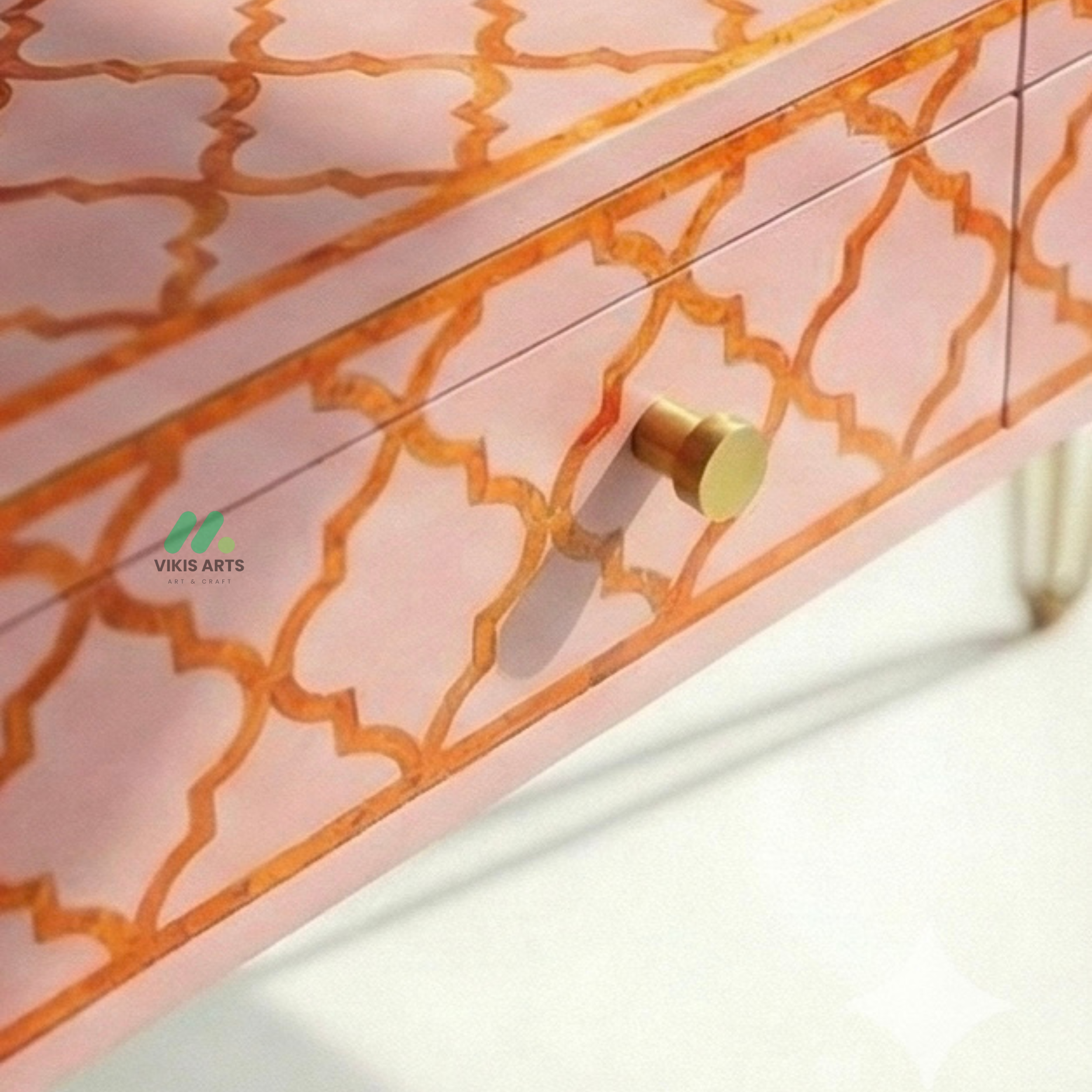 Elevate your workspace with this handcrafted Bone Inlay Desk, a perfect blend of artistry and everyday functionality. Expertly made by skilled artisans, this desk features intricate bone inlay patterns set into a solid wooden frame, creating a striking surface that adds elegance and character to any room.