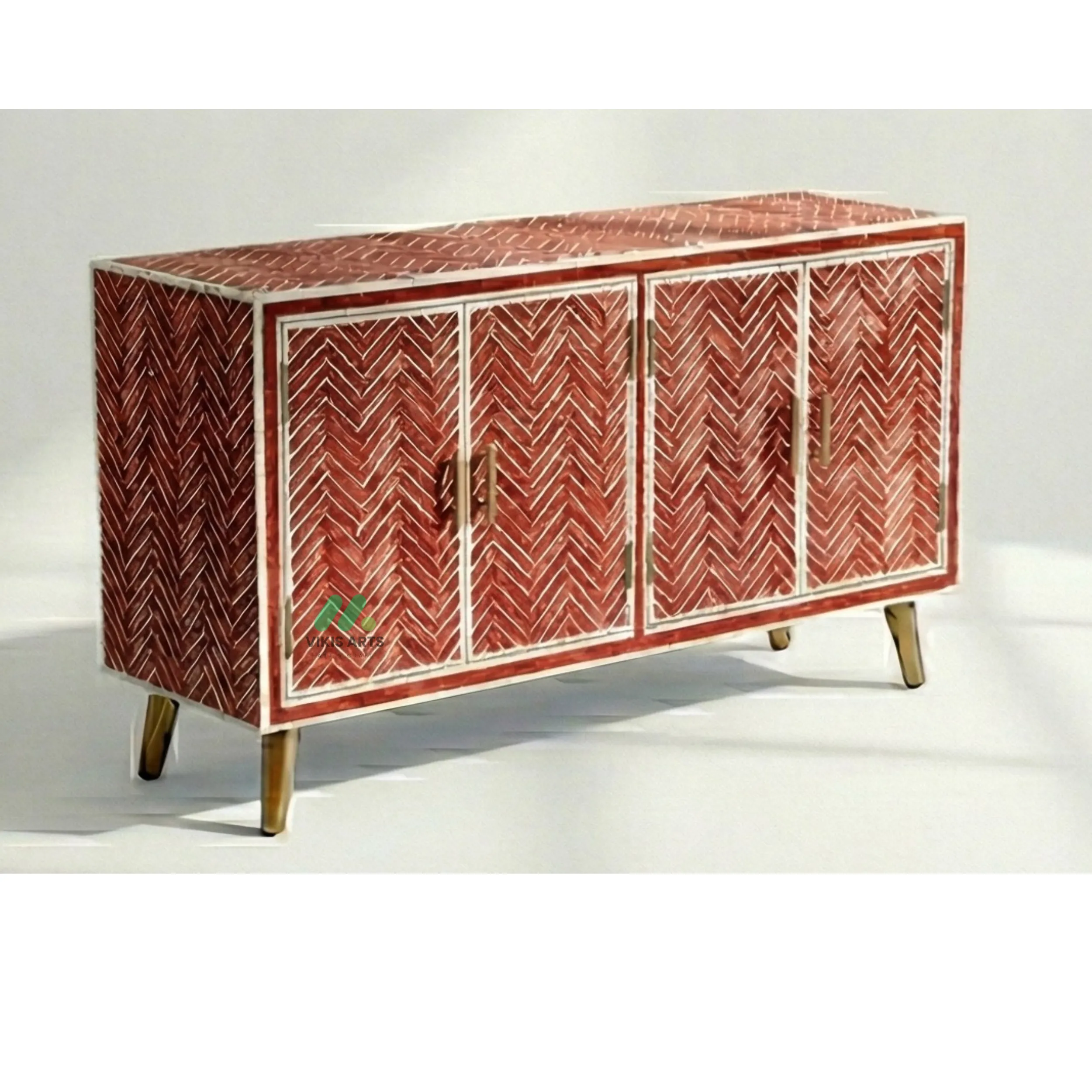 Add timeless elegance to your home with this exquisite Bone Inlay Cabinet, meticulously handcrafted by skilled artisans using traditional inlay techniques. Each piece features ethically sourced bone, carefully set into a solid wood frame to create intricate patterns that make every cabinet truly one of a kind.