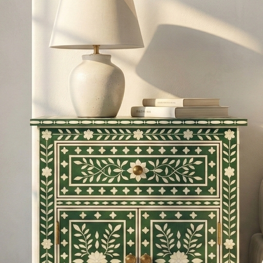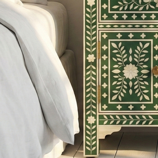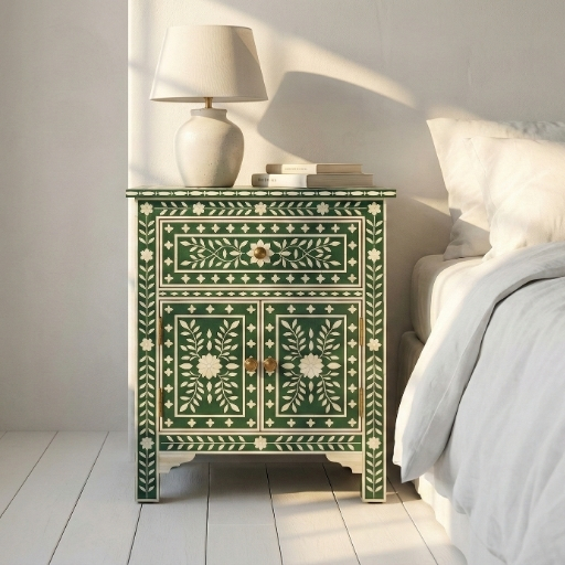 Bone inlay Green bedside table